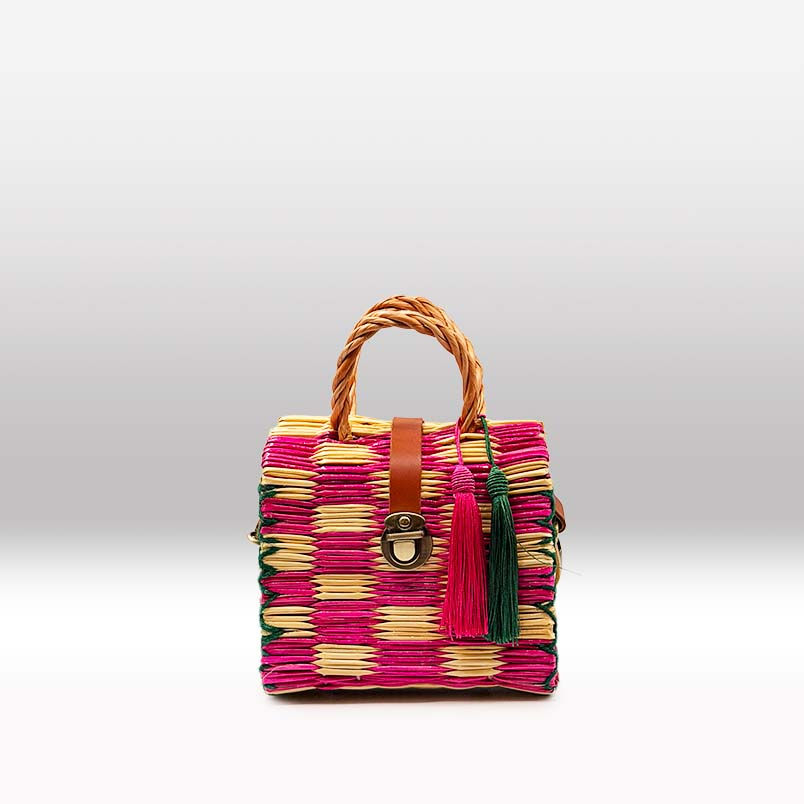 The smallest in our collection, the Baby Basket is a joyful mini version of our classic Portuguese reed bags. One of thenewest delivery to the Baby range - The Baby Rachel basket holds a special place in our heart and 10% of all sales will be donated to Breast Cancer Awareness. The pink chequered basket features a contrasting hot pink and natural reed check. With a sage green stitching around the edge it is a gorgeous little accessory to your outfit and simultaneously supports a cause close to my heart.