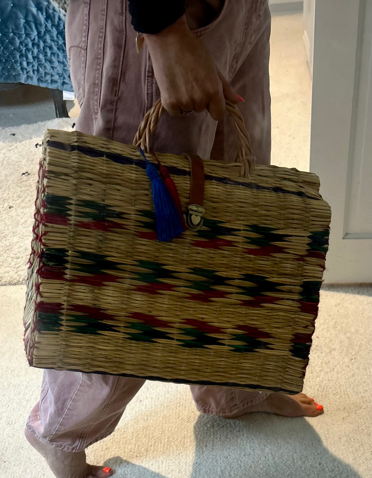 Handwoven using traditional techniques, this beautiful large-sized bag has ample space for an all-day outing — whether you’re carrying extras for the children or your latest shopping finds, it stylishly holds it all.